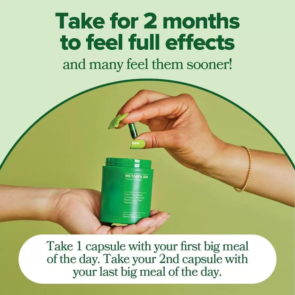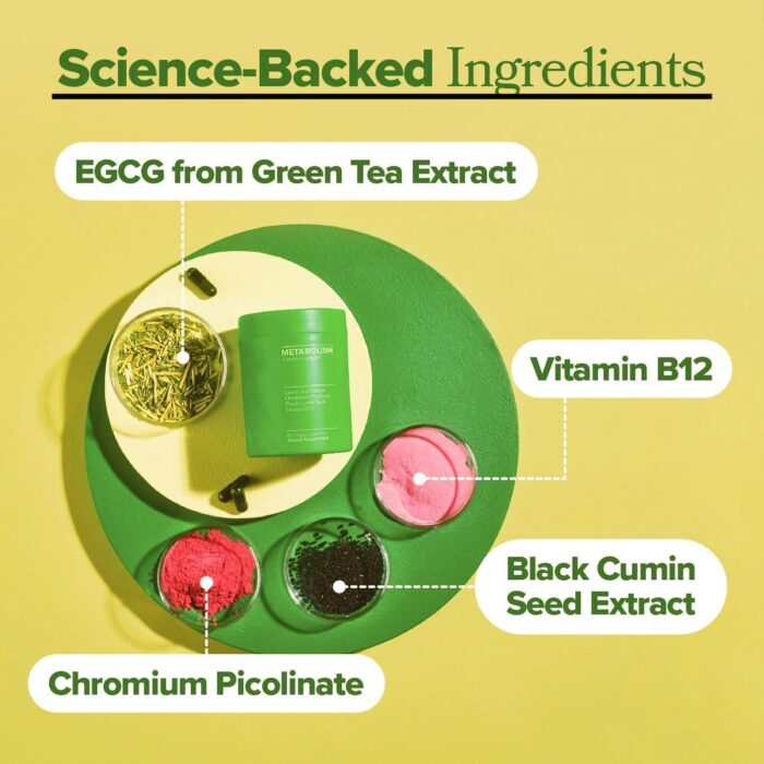 Metabolism Support contains EGCG from Green Tea Extract, Chromium Picolinate, Black Cumin Seed Extract. |
